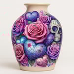 Romantic with an edge. The Rebel & Bloom vase is creatively designed with soft hearts, delicate skull accents, and bold hand‑painted detailing that blends sweetness with attitude. Each vase comes in your choice of crisp white or soft pink, both finished with vibrant color and a glossy, high‑end look. A standout décor piece that brings rebel romance to any room, whether styled with flowers or displayed on its own.