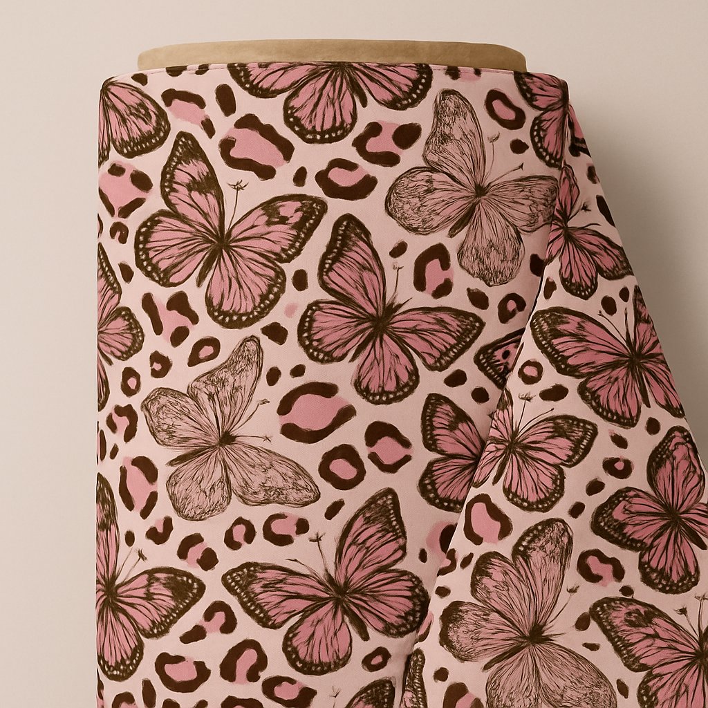 Soft romance meets wild energy. Savage Jungle blends pink‑on‑pink tones with delicate butterflies and a subtle leopard print for a look that’s both elegant and untamed. The pattern is creatively designed to bring a feminine, modern edge to apparel, bags, décor, and any project that needs a touch of pretty with a little bit of wild.