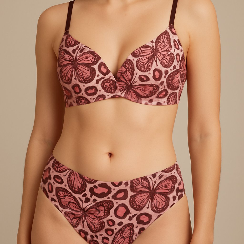 Freedom with a fierce twist. The Wild Wings set features a beautifully shaped bra and matching panties designed with bold wing‑inspired artwork that brings movement, confidence, and attitude to the whole look. Bright tones, smooth lines, and a creatively designed pattern make this set stand out instantly. Comfortable, flattering, and full of personality — perfect for anyone ready to spread their wings in style.