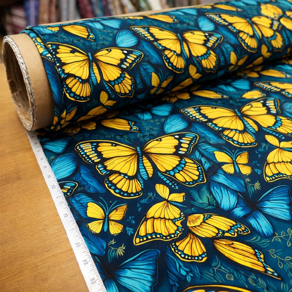 Bright, bold, and full of motion. Wild Wing Riot explodes with vivid blue and yellow butterflies in a high‑energy layout that feels alive on the fabric. The colors pop, the wings feel powerful, and the whole design brings that wild, confident attitude your customers love. Creatively designed, vibrant, and eye‑catching — perfect for apparel, bags, bows, décor, and any project that needs a fearless splash of color.